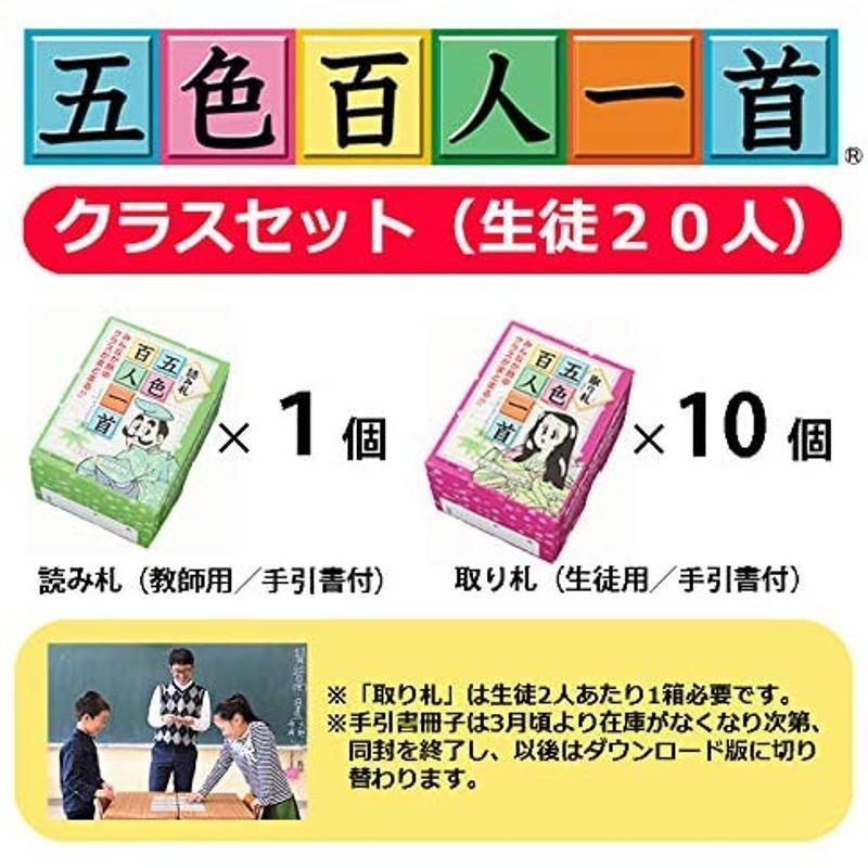 商品情報 【商品名】 五色百人一首クラスセット(生徒20名用) 【商品説明】 ・?20人クラス用に取り札10箱と、教師(読み手)用の読み札1箱をセットにしました。 ・?全日本かるた協会公式推奨札 ・?商品内容 ・読み札 1箱 /取り札 5箱 /五色百人一首しおり(5枚組) 2セット(キャンペーンプレゼント) ・?本商品は、五色百人一首大会の公式認定札です。 【サイズ】 高さ : 8.20 cm 横幅 : 23.90 cm 奥行 : 28.70 cm 重量 : 2.53 kg ※梱包時のサイズとなります。商品自体のサイズではございませんのでご注意ください。 |