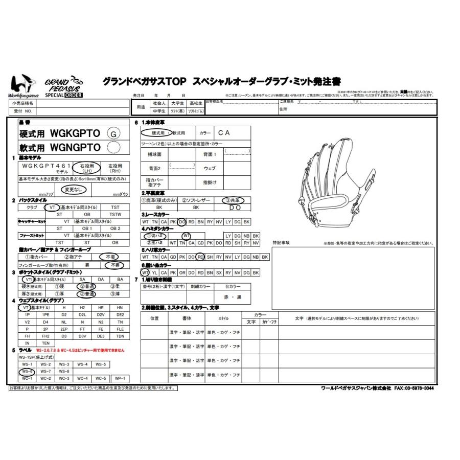 商品情報 ワールドペガサス 軟式オーダーグローブ ミット スペシャルオーダー オーダー方法 ・ワールドペガサスのオーダーグローブシュミレーションを使ってオーダーグローブを作成してください。 ・注文確認後にメールをお送りいたしますので、そちらのメールアドレスに返信する形でシミュレーション時に保存したPDFを添付してお送りください。 (電話対応可能) ・メーカーが定めるオプション等(刺しゅう・カラー追加など)は実費負担となります。 ※プラス料金が発生する場合は代引きにて差額分をご請求させて頂きます。 ・グローブ型付け・湯もみ加工は無料でさせて頂きます。 納期について ・こちらの商品は受注生産となります。納期はメーカー手配後60〜100日の予定です。納期はシーズンや生産状況により前後する場合がございます。ご了承ください。 注意事項 ・受注生産品のため、いかなる場合でもご注文確定後のキャンセル・返品・交換はお受けできません。 ・オーダーグラブの為(代引き・後払い)不可となります。 ・こちらの表示価格はオプションなどを含まない金額となります。オーダー内容にあわせて商品代金を修正いたします。 |